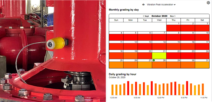 通过颜色编码分析来查看振动趋势,以了解振动速度和加速度。